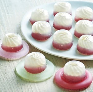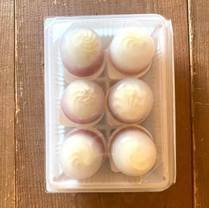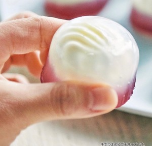 つるん〜♪ぷるん〜♪とした水まんじゅうの生地に、オーストラリア産の滑らかなクリームチーズを使ってレアチーズに仕立て、かねい独自の製法で可愛らしく閉じ込めました。水まんじゅうの二層からなる生地はほのかな葡萄の香り。見た目に違わずその食感や味を引出すために一つ一つが職人の手作りです。